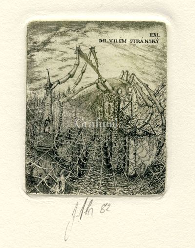 4. Exlibris J.M. Belder (Pavouci) - nevytištěn lept - 58:50, Belgie <<< domů - home